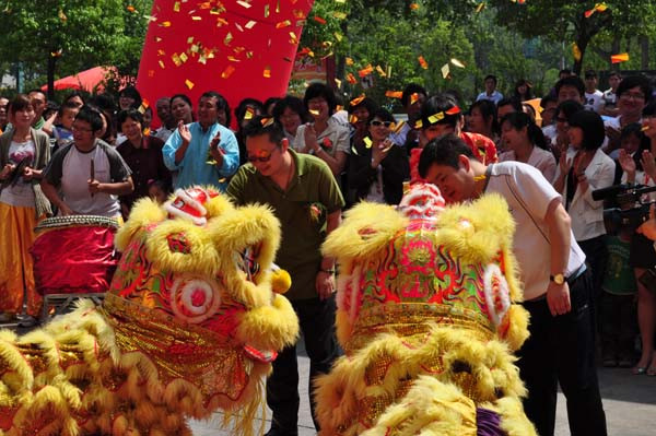 宋總和堂總為舞獅點金,寓意江北旗艦店開業大吉