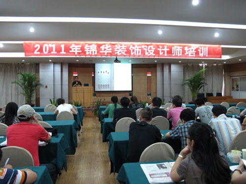 2011年7月22日,錦華裝飾南京大區(qū)研發(fā)中心專程請來了北京聯(lián)合大學(xué)姜喜龍老師,為全體設(shè)計(jì)師作為期一天的專業(yè)設(shè)計(jì)及客戶服務(wù)培訓(xùn)。姜老師在北京多次為東易日盛、元洲等全國性裝飾公司作設(shè)計(jì)研發(fā)顧問,長年游走全國講學(xué)。